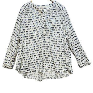 Jane And Delancey Button Front Blouse Women 3X White Bird Print Roll Tab Sleeves