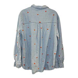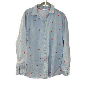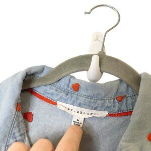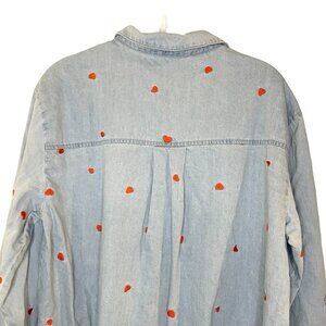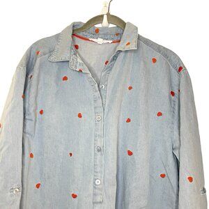 Jane And Delancey M Shirt Top Heart Love Chambray Blue Lyocell Embroidered Red