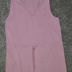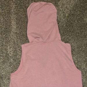 Stylish pink sleeveless dress with a hood and drawstring waist. Would make an excellent swim cover up!