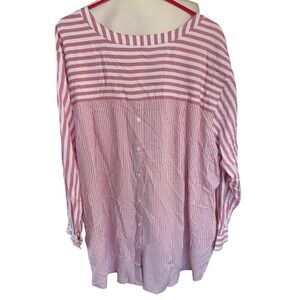 Jane And Delancey Pink White Stripe Pullover Tunic Blouse Cute Back 3XL XXXL