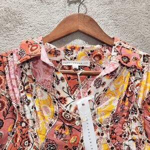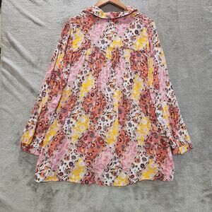 Jane And Delancey Pink Yellow Floral Oversized Button Up Blouse Size Medium NEW