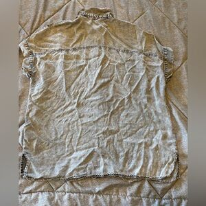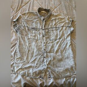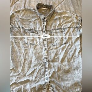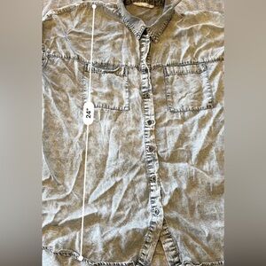 Jane And Delancey Shirt Womens M Gray White Striped Crinkle Textured Button Up