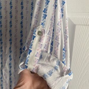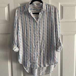 Jane And Delancey Women's Button Front Medium Pink Blue Rolled Cuff Button Up