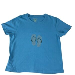 Jane Ashley Casual Lifestyle embellished Rhinestone Flip Flops size Large Short sleeve Shirt 100% Cotton