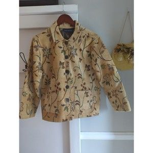 Jane Ashley Clothing Women's S Gold Tan Button Up Corduroy Floral Jacket.