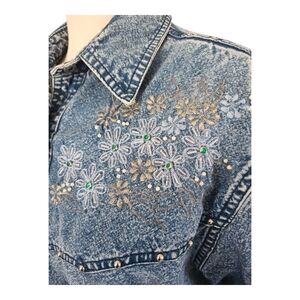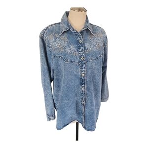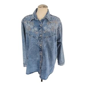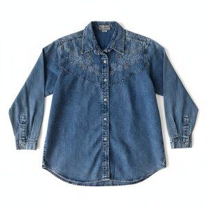 Jane Ashley Denim Western Button-Up Shirt – Embroidered – Size L