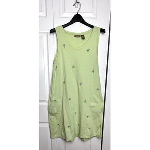 Jane Ashley VTG Casual Lifestyle Green Embroidered Palm Trees Dress Size Large. Good used condition sleeveless cotton dress please review all pics for overall condition and measurements.