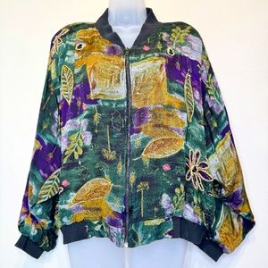 Jane Ashley | VTG Jewel Tone Fall Floral Puff Paint Bomber Oversized Coat Jacket