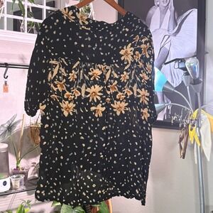 Jane Ashley Woman Black Floral Print Rayon Blouse Top 3X 3XL Short Sleeve