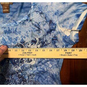 Jane Ashley women's blue patterned cap sleeve top size XL asymmetrical hem