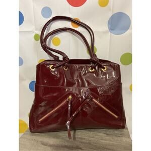Jane August Designer Genuine Leather Made in Italy Burgundy Patent Large Bag Sat