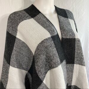Jane & Berry Gray & White Plaid Fringed Soft Poncho Sweater