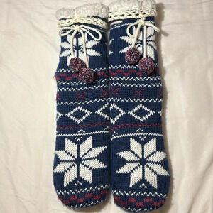 Jane & Bleecker Women's Size 8-9 Faux Fur Lined Slipper Socks Non Skid