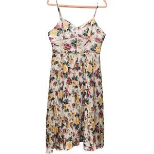 Jane Celeb Style Women's Size Large Floral High Waisted Pleated Midi Dress. Perfect for sunny beach days with its boho-chic vibe.