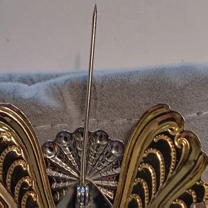 Jane Davis Angel Faux Pearl Rhinestone Ribbon Mixed Metal Brooch Pin 1996 Signed 2.5"H