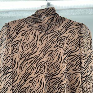 Jane & Delancey Animal Print Mock Neck Top Long Bishop Sleeve Brown Size Small