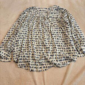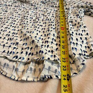Adorable Jane & Delancey women’s 2X lightweight blouse featuring a navy bird-on-a-wire print. Flowy, comfortable, and perfect for work, brunch, or everyday wear. Partial button-front with 3/4 length sleeves and a relaxed silhouette.