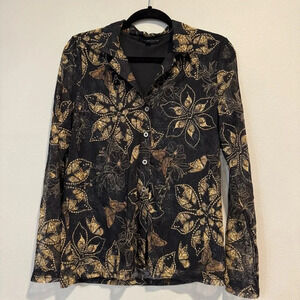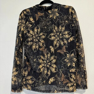 Jane Delancey Blouse Button Up Mesh Floral Long Sleeve Butterfly Whimsigoth M