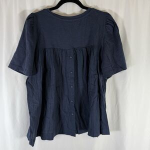 Jane Delancey Blouse Women's 1X Navy Blue Short Sleeve Textured Back Round Neck