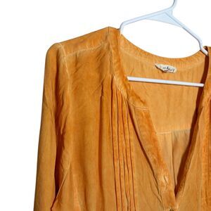 Jane & Delancey Blouse Women's Medium Orange V-Neck 3/4 Sleeve Button Up
