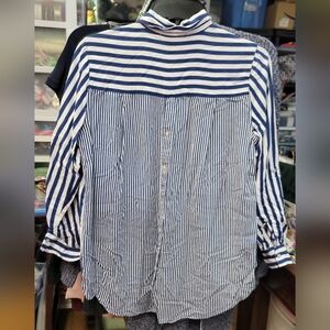 Jane & Delancey Blue White Striped Button Down Shirt Small