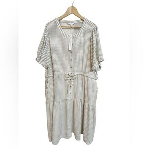 Jane + Delancey Boho Olive Green Stripe Tiered Gauzy Maxi Dress Size 3X NWT
