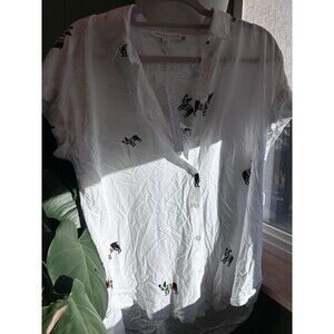 Jane + Delancey Bulldog Shirt White W/ French Bulldogs Large Rayon
