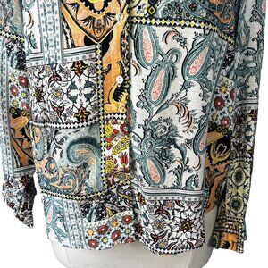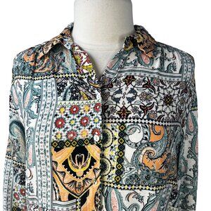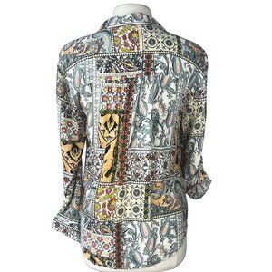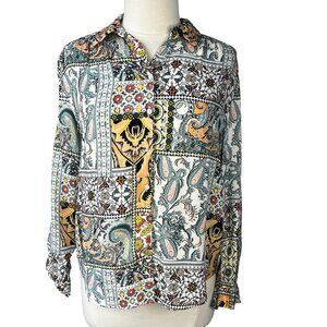 Jane & Delancey Button Front Shirt Womens Small Rolled Sleeves Retro