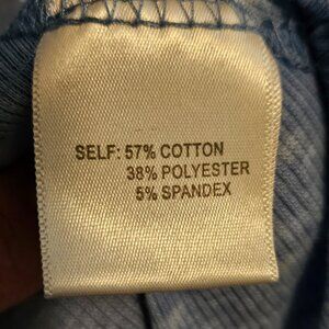 - Materials: 57% cotton, 38% polyester, 5% spandex
