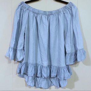 Jane & Delancey Chambray Off Shoulder Ruffle Top