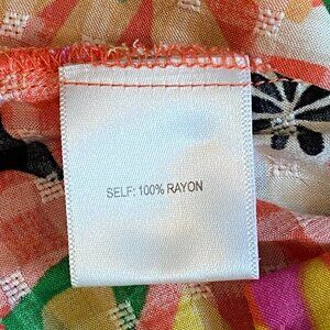 The Jane + Delancey Floral Button Down Short Sleeve Shirt in size S is a stylish and versatile addition to any woman's wardrobe. Made from lightweight and breathable rayon fabric, this shirt features a beautiful multicolor floral pattern, perfect for casual occasions during the summer, fall, and spring seasons. The collared neckline, short sleeves, and button closure add a touch of sophistication to the basic yet trendy style, making it suitable for various themes from contemporary modern to retro, hipster, and bohemian. Easy to care for with machine washable instructions, this shirt is ideal for women who appreciate effortless and comfortable fashion choices.