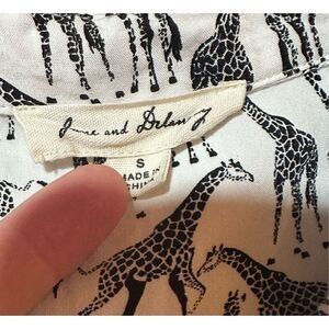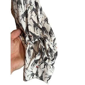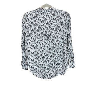 Jane & Delancey Giraffe Print Roll Tab Sleeve Button Front Collared Top Blouse small