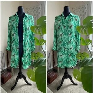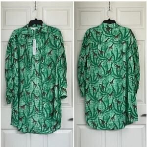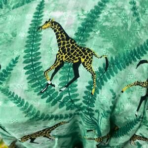 Versatile (dress, shirt, pajama top, robe, bathing suit coverup), oh-so soft, cool to the touch fabric, stunning botanical print containing what could be one of the world’s cutest animals—giraffes all over!