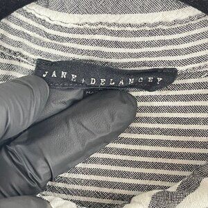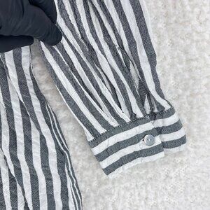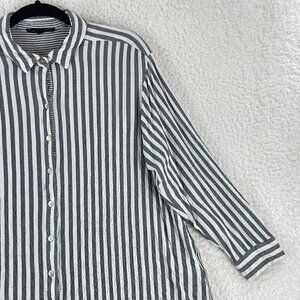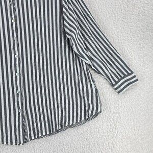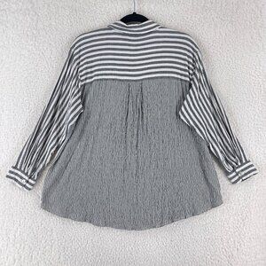 Jane + Delancey Gray Striped Button-Up Shirt Womens Long Sleeve Plus Size 1X
