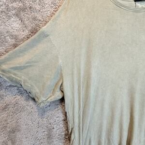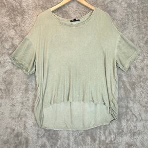 Jane + Delancey Mixed Media High Low Hi Lo Sage Green Ribbed Top T Shirt L Large