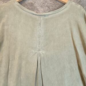 Jane Delancey Mixed Media High Low Sage Green Ribbed Tunic Top T Shirt L