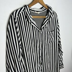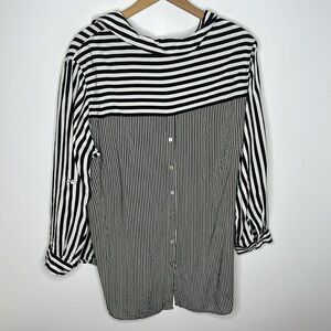 Jane & Delancey Mixed Stripe Print Button Back Hi Low Collared Plus Size Blouse