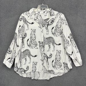 Jane & Delancey Shirt Womens 2X Plus Size Black Cheetah Tiger Print Button Front