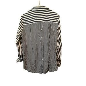 Jane & Delancey Shirt Womens Large Blue White Stripe Rayon Long Sleeve Button Up.