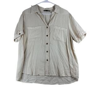 Jane + Delancey Short Sleeve Collared Button Up Women's Large Beige Rayon Modal