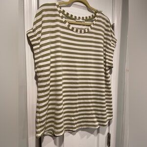 Jane + Delancey Size XL Banded Sleeve Crew Neck Green White Stripe Terry Top