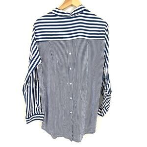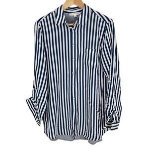 Jane & Delancey Stripe Button Front and Back Women Size Medium Blue White