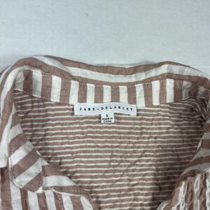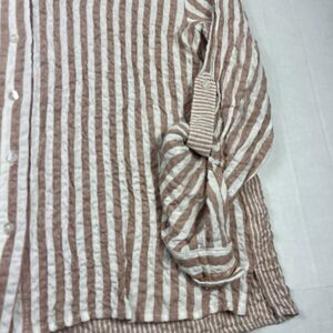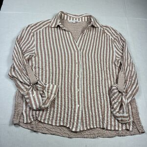 Chic Jane + Delancey striped button down blouse in size Small. Features a lightweight crinkled texture, long sleeves with roll tab option, and a classic relaxed silhouette perfect for layering or everyday wear.