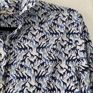 Jane + Delancey Womens Medium Shirt Blue Giraffe Safari Animal Print Button Up. Very good used condition, no flaws. See photos for full details.