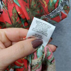 Jane + Delancey Womens Red Tropical Print Button-Up Shirt & Elastic Waist Pants