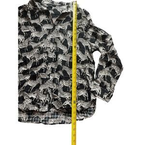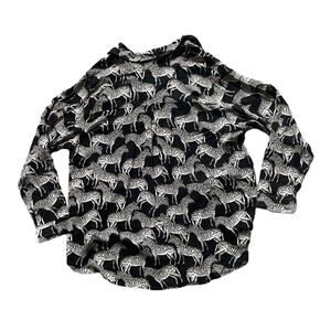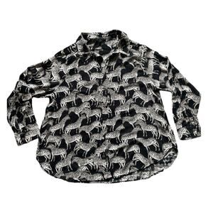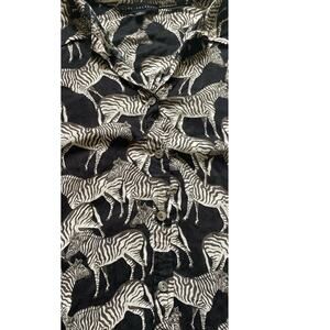 Jane+Delancey Black button down shirt with Zebra All Over Print lightweight shirt sheer but more transparent because of print an pattern