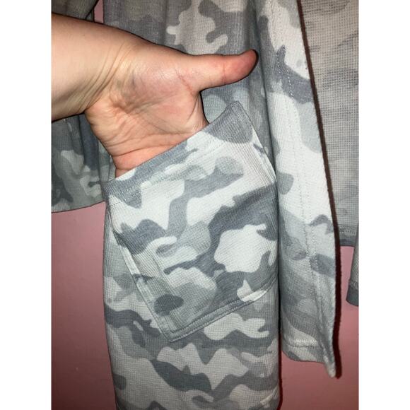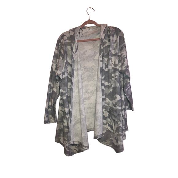 Jane & Delancey grey camo hooded open front cardigan size 3X