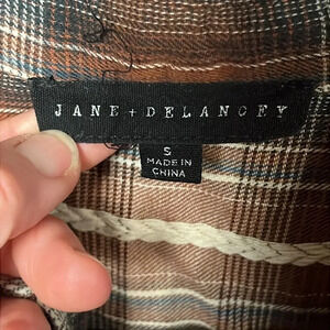 Jane + Delancey women’s button up flannel S brown white plaid soft lightweight