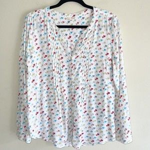 Jane Delancy Shirt Top Size L Hearts Print Long Sleeves Buttoned Comfy Colorful