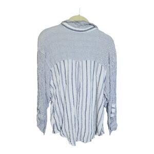 Jane & Delancy Womens Crinkle Fabric, Blue & White Stripe Button Front With Button Up Long Sleeve Top Size 1X, Please See Measurements For Best Fit, Nice Condition!
